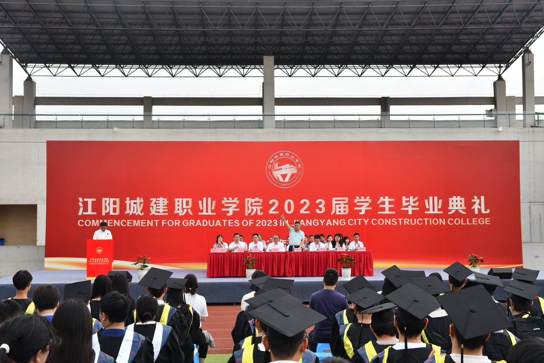 6月9日上午,江阳城建职业学院2023届学生毕业典礼在田径运动场隆重举行,温情送别毕业生。江阳城建职业学院理事长吴振华,党委书记蒋和平,执行校长刘玉增,副校长吴炎龙、杨林、薛祖平,党委副书记刘凯华、徐世银等领导出席典礼,各学部主要负责人、毕业班辅导员和2023届毕业生参加典礼。典礼由执行校长刘玉增主持。