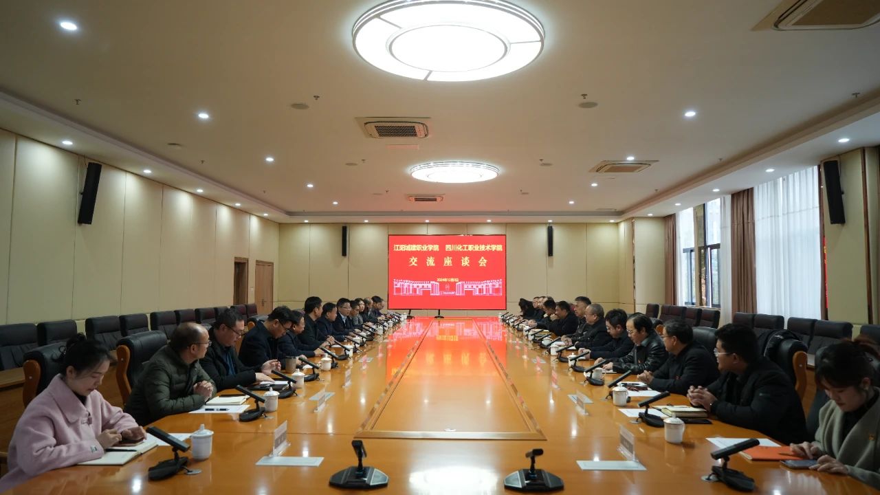12月3日上午,受四川化工职业技术学院邀请,江阳城建职业学院理事长、校长吴振华带队,党委书记蒋和平,党委副书记、执行校长刘玉增,党委委员、副校长吴炎龙,党委副书记、学生工作部部长徐世银,副校长、教务处处长秦庆礼,副校长任新红、谭建鑫等领导前往四川化工职业技术学院交流学习。